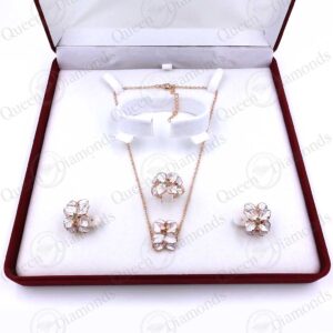 Υπέροχο, λαμπερό floral σετ με λευκό σμάλτο και Swarovski diamonds σε ροζ χρυσό 18Κ