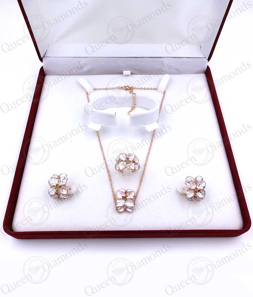 Υπέροχο, λαμπερό floral σετ με λευκό σμάλτο και Swarovski diamonds σε ροζ χρυσό 18Κ